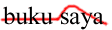 buku(本)とsaya(私)の2語から成るポーズグループです。第2尾音節,つまり”saya”の”sa”にアクセントがあります。その部分で,ピッチ(声の高さ)が急激に上がり,その後下降します。このパターンが最も基本的なもので,1文中に必ずこのパターンが1つ出てきます。また,語や句(フレーズ)を単独で発話する場合は基本的にこのパターンで発話します。